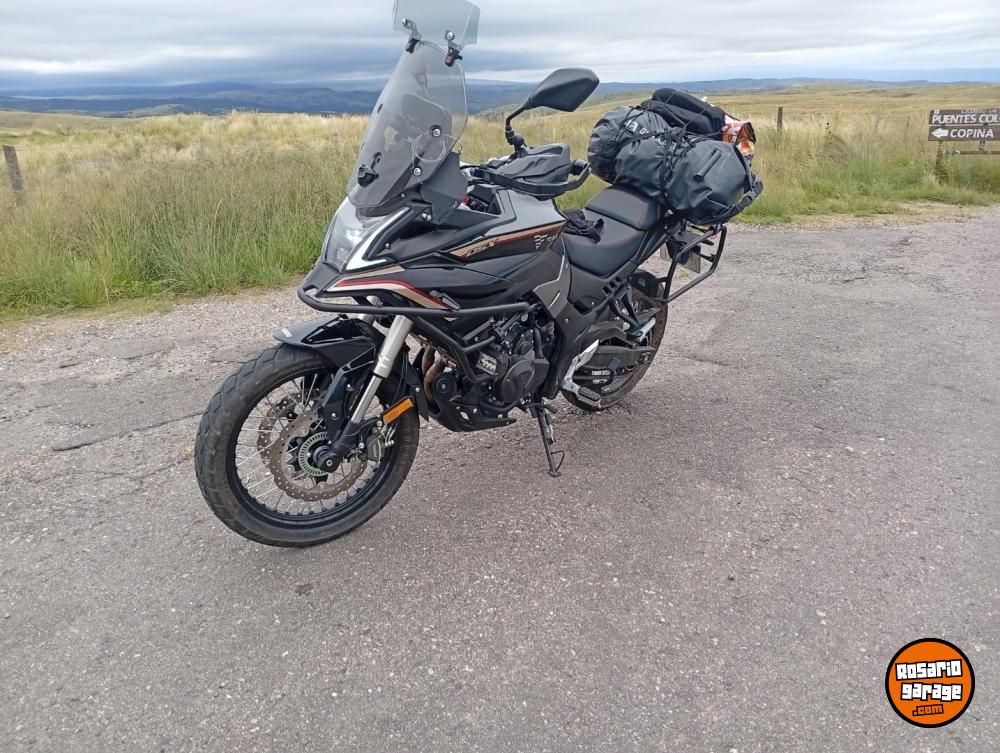 Se vende Voge DS500X Adventure , completamente equipada para viajar, 3 baúles shad aluminio, ABS descontable, faros auxiliares, cubre puños, deflectores de viento en parabrisas parte superior y laterales, llantas a rayos cubiertas sin cámara, presión de neumáticos en pantalla , y pantalla con protector visera y protector Blindex .servicios al día en concesionario oficial manual firmado, se vende por cambio de modelo, escucha ofertas razonables , precio en dólares o el cambio del día en pesos, titular la compré 0km. Soy de la cuidad de Puerto General San Martín.