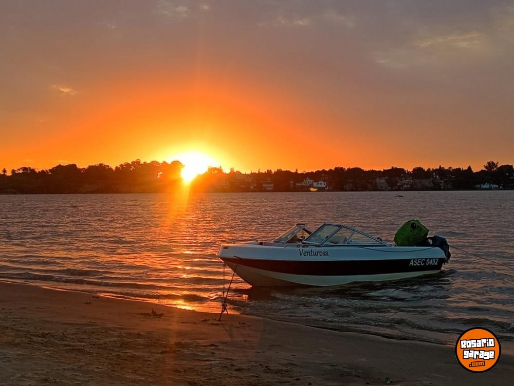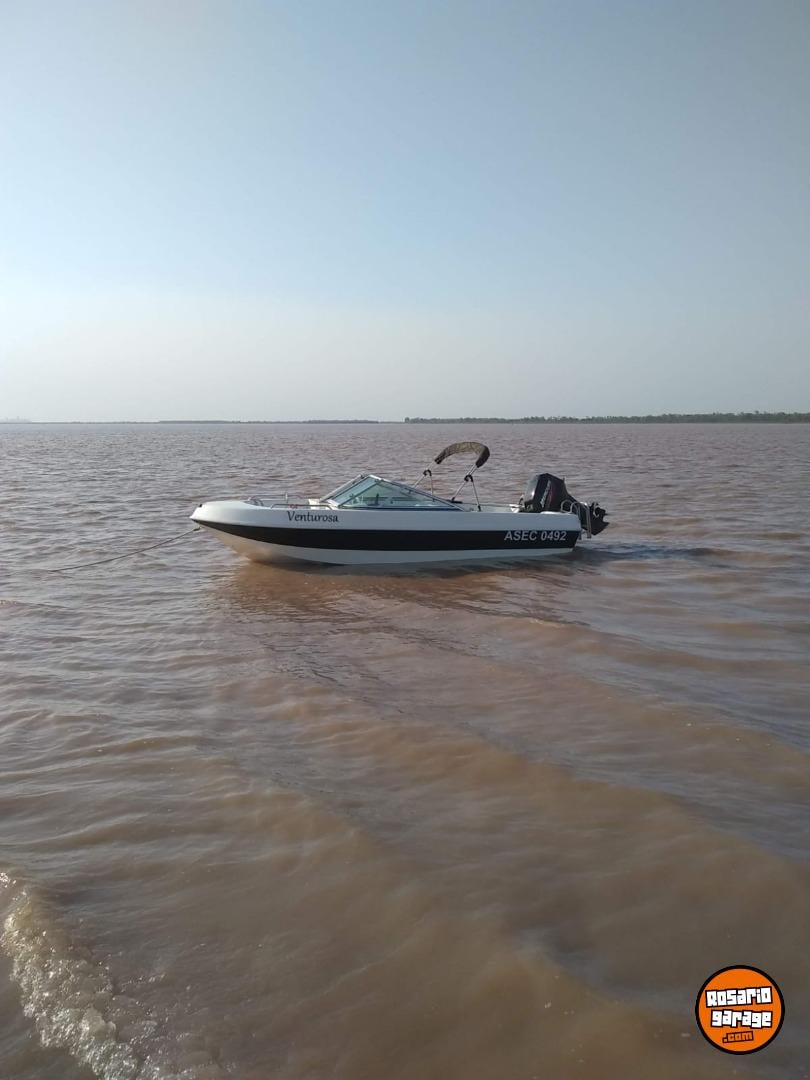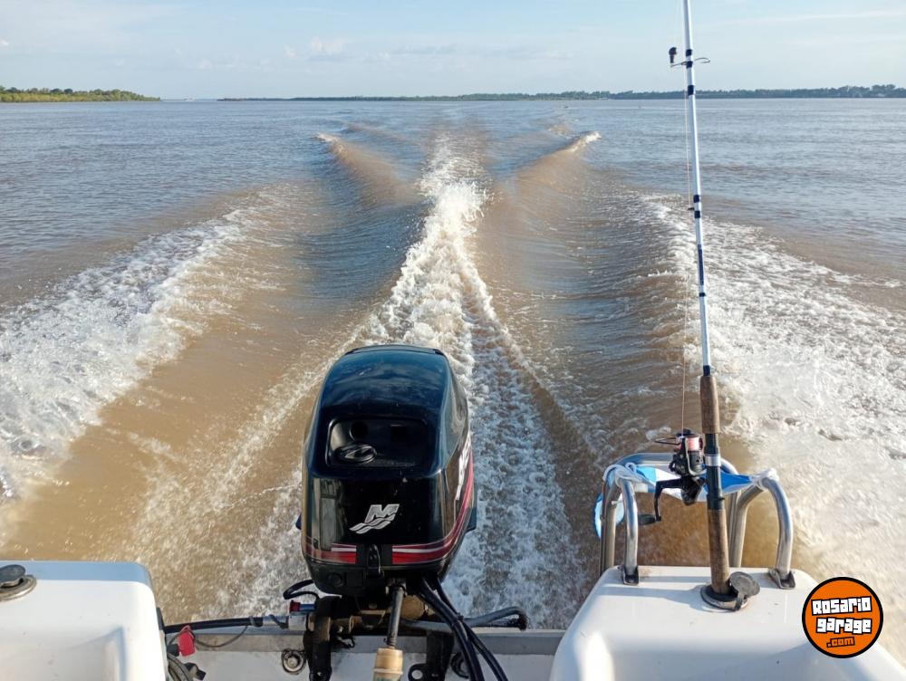 Mercury 40 hp , 2 cilindros americano, impecable , full , power trim , automix , arranque eléctrico , ecosonda , luces led ,bomba de achique, escalera , toldilla , tanque original Quiksilver Mercury , con elementos de seguridad ( todo ) , conjunto del 2013 , uso familiar , buena lancha , poco uso . se encuentra en guarderia con cuna en pueblo esther. posee un trailer no rutero , Titular , lista para transferir , patentes al dia.