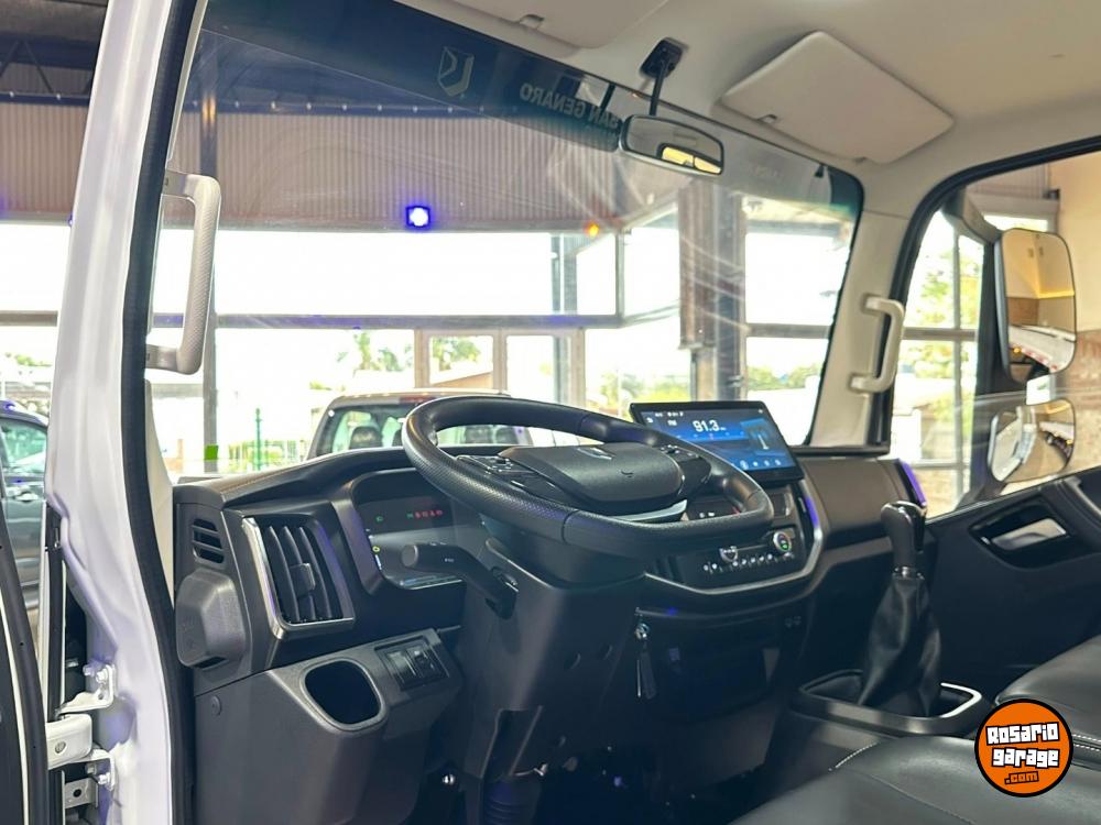 Interior de cabina simplemente sorprendente, con Filtro de polen. Tapizados ECO CUERO negro. Butaca conductor neumática. Asientos reclinables. Tablero digital 7”. Computadora de abordo. Comandos al volante. Control crucero. Levanta cristales eléctricos, lado conductor touch down. Cierre centralizado de puertas. Cierre automático de puertas con sensor de velocidad. Pantalla TUCH 12” + Bluetooth + 3 USB. CAMARA DE RETROCESO. Volante regulable en altura y profundidad.