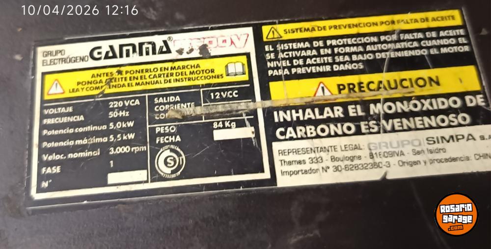 Generador gamma 5500w recién reparado faltaría