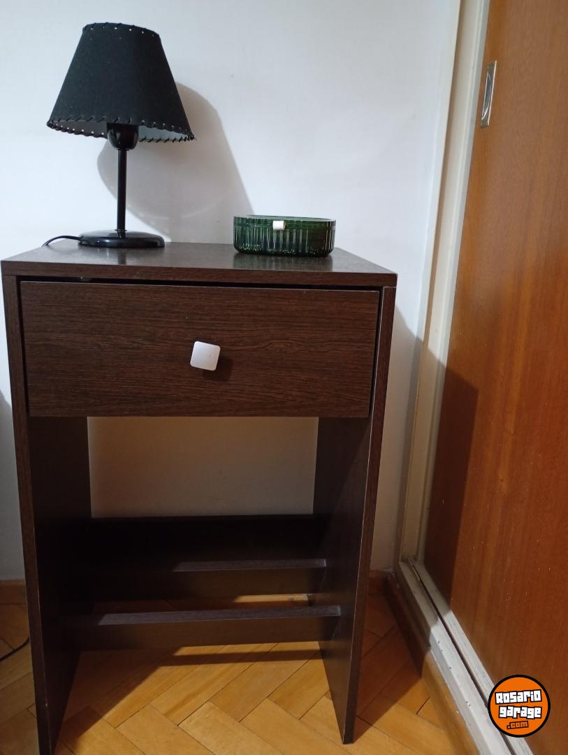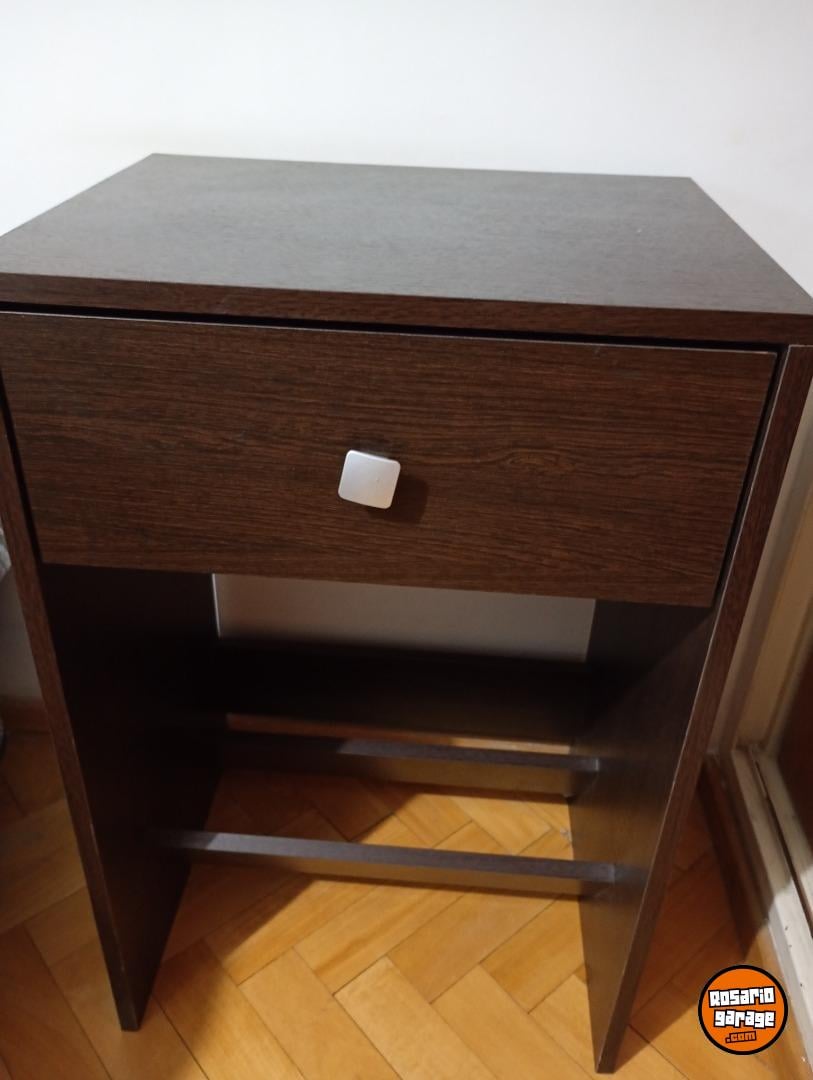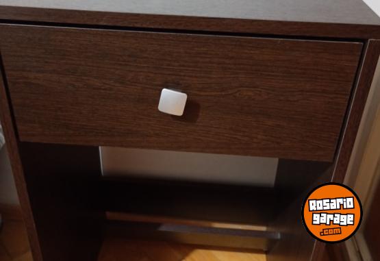Mesitas de luz con cajón y zapatero, madera, color wengue. Excelente estado.