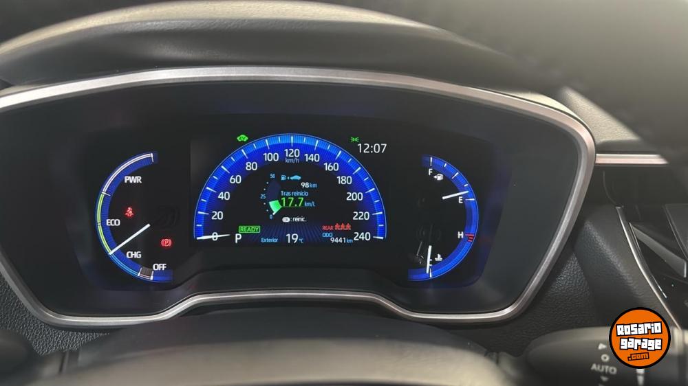 El Toyota Corolla HEV 1.8 SEG eCVT (modelo híbrido tope de gama) destaca por su alta eficiencia y confort, combinando un motor naftero 1.8L y uno eléctrico para una potencia total de 122 CV. Su sistema autorrecargable elimina la necesidad de enchufes. Incluye el paquete de seguridad Toyota Safety Sense, tablero digital, pantalla multimedia de 10p